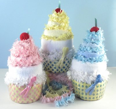 Everyone loves dessert, so this is going to be the hit of the babyshower. Use as a centerpiece, or as the showstopper gift, this Diaper Sundae/Cake is full of fun suprises inside. 17" Tall.