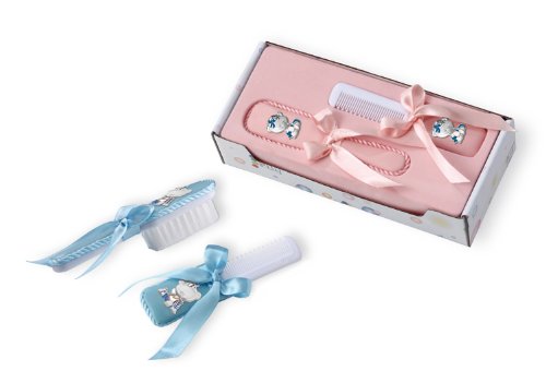 CHOCO & VANILLA Series: BABY HAIR BRUSH and COMB Gift SET in STERLING SILVER. Made in ITALY. (BLUE, PINK) (VANILLA in PINK)