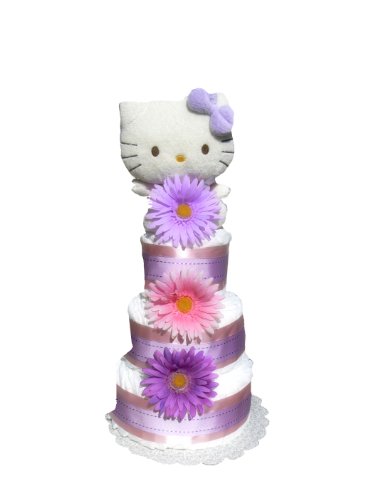 Hello Kitty Baby Shower Diaper Cake Centerpiece Gift Set (3 Tier, Purple)