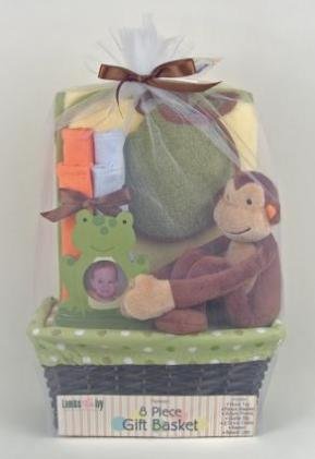 Looking for the perfect baby gift? Check out the Papagayo Gift Basket by Lambs & Ivy. It has all the right baby accessories parents need to take good care of their children. This gift basket set includes a plush monkey, bib, blanket, picture frame, 2 drool clothes, basket and basket liner. Whether it's for a birthday, shower, or other event, this baby basket has all the essentials!
