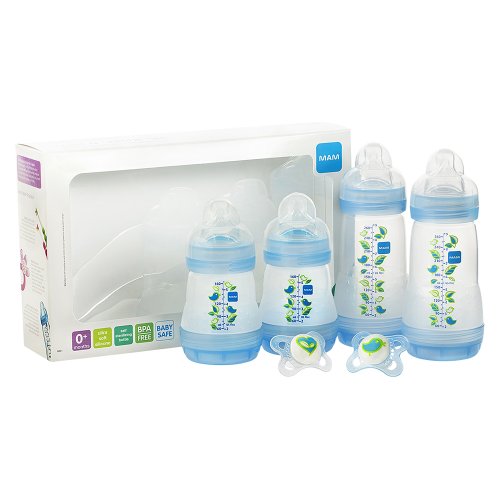 MAM Baby - Gift Set - 4 Bottles and 2 Pacifiers (0+ Months) - Blue