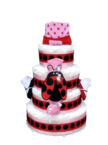 4 Tier - Red and Pink Lady Bug Baby Shower Diaper Cake - Gift Set